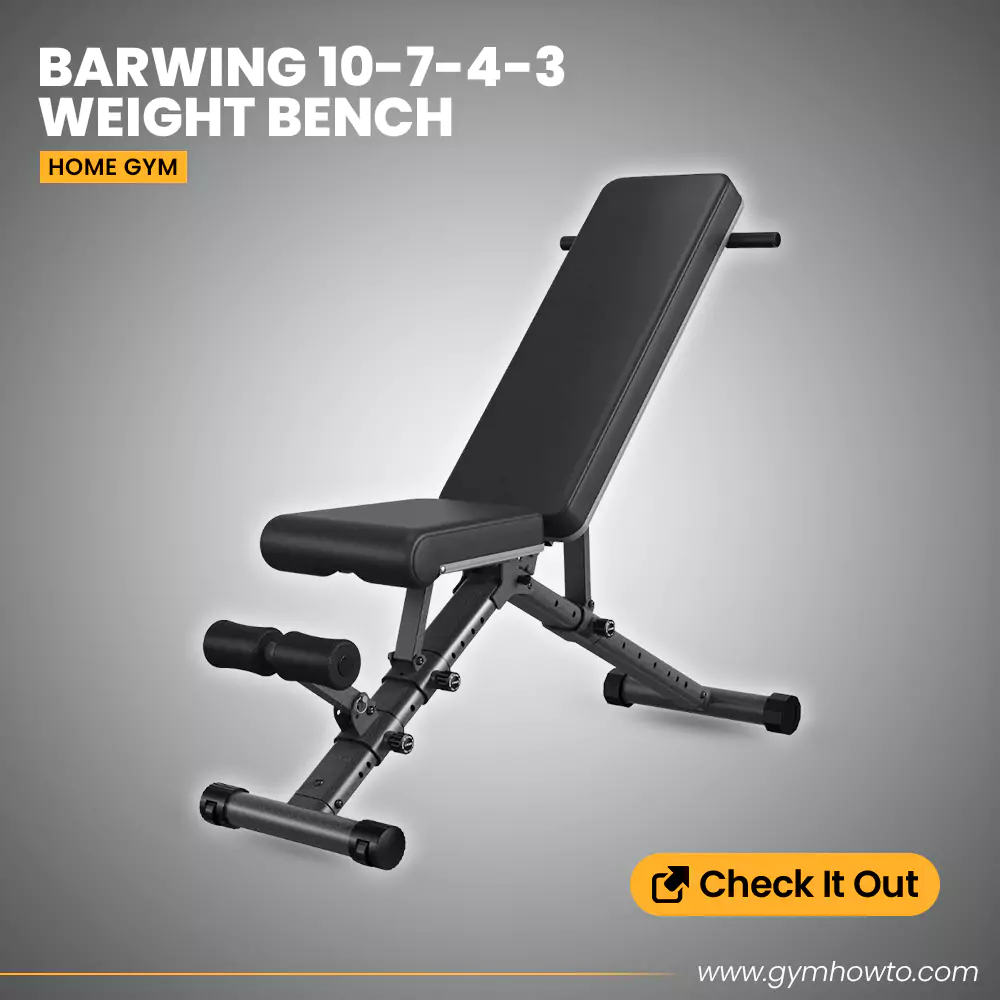 The BARWING's selling point is sheer adjustability — 10 backrest positions, 7 seat angles, 4 leg holder positions, and 3 decline settings. Assembly takes about 5 minutes. It handles 800 lbs and the upgraded padding is thick and comfortable. The trade-off: it does not fold.