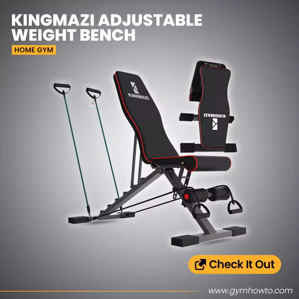 The KINGMAZI is the lightest and most compact bench here at 23 lbs. It assembles in about 2 minutes, folds instantly, and comes with two pairs of resistance bands included. Good for beginners or anyone short on space. The 650 lb weight limit is the lowest on this list, so heavier lifters or those working with serious weight should size up.