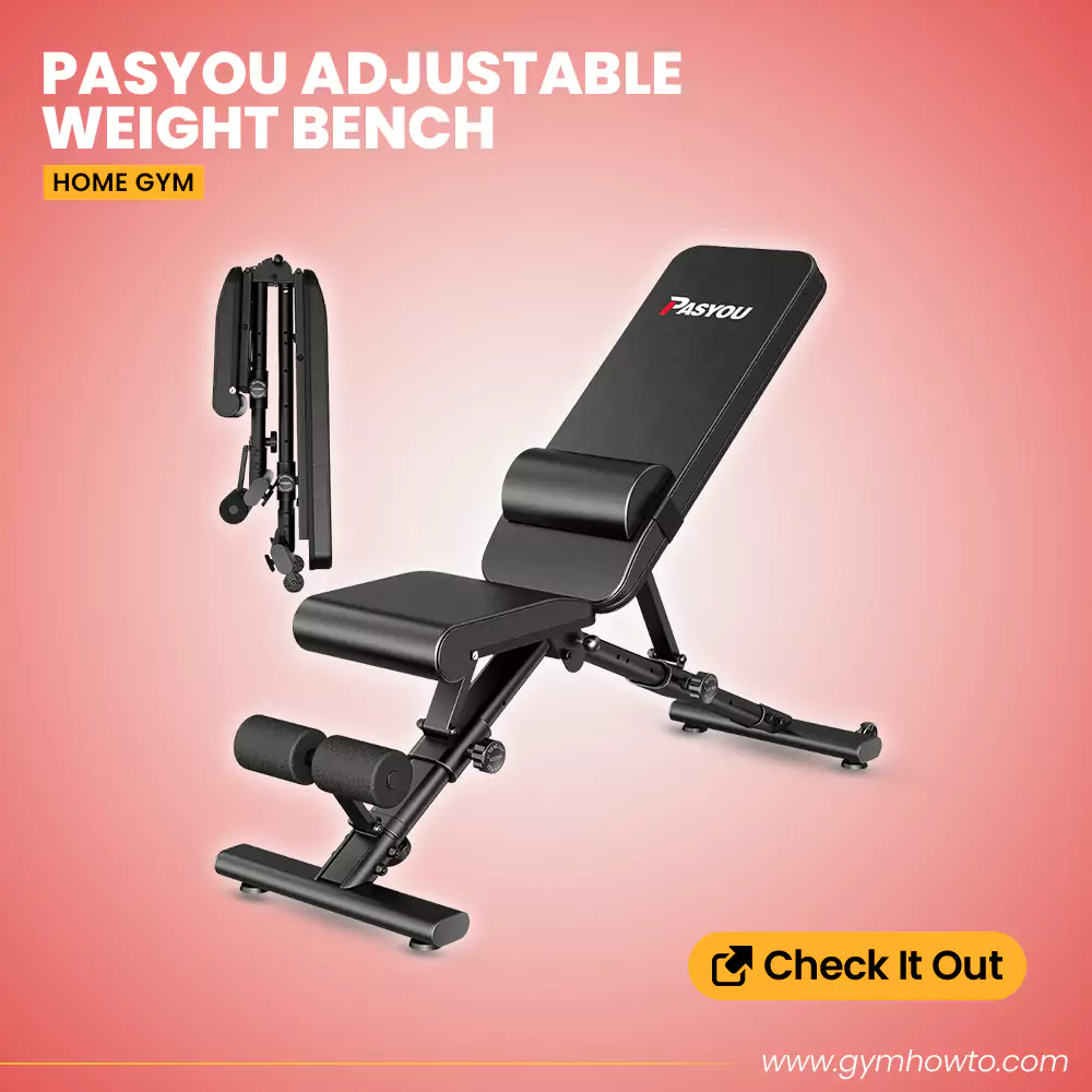 The PASYOU PA500 uses 1.5mm commercial-thickness steel tubing, which makes it feel noticeably more solid than similarly priced benches. The 90-degree backrest lock is useful for seated shoulder presses. It folds for storage, though it is heavier than the FLYBIRD at ~39 lbs.