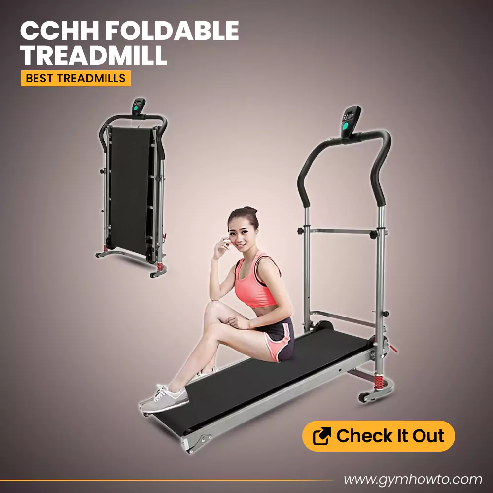 The CCHH is a manual treadmill with adjustable incline and a shock absorption system that helps cushion your knees. The silicone damping design reduces impact better than basic manual treadmills. It folds quickly and has wheels for easy storage. The main downside is build quality -- the frame lacks the powder coating that models like the ProGear have, so it may show wear sooner.